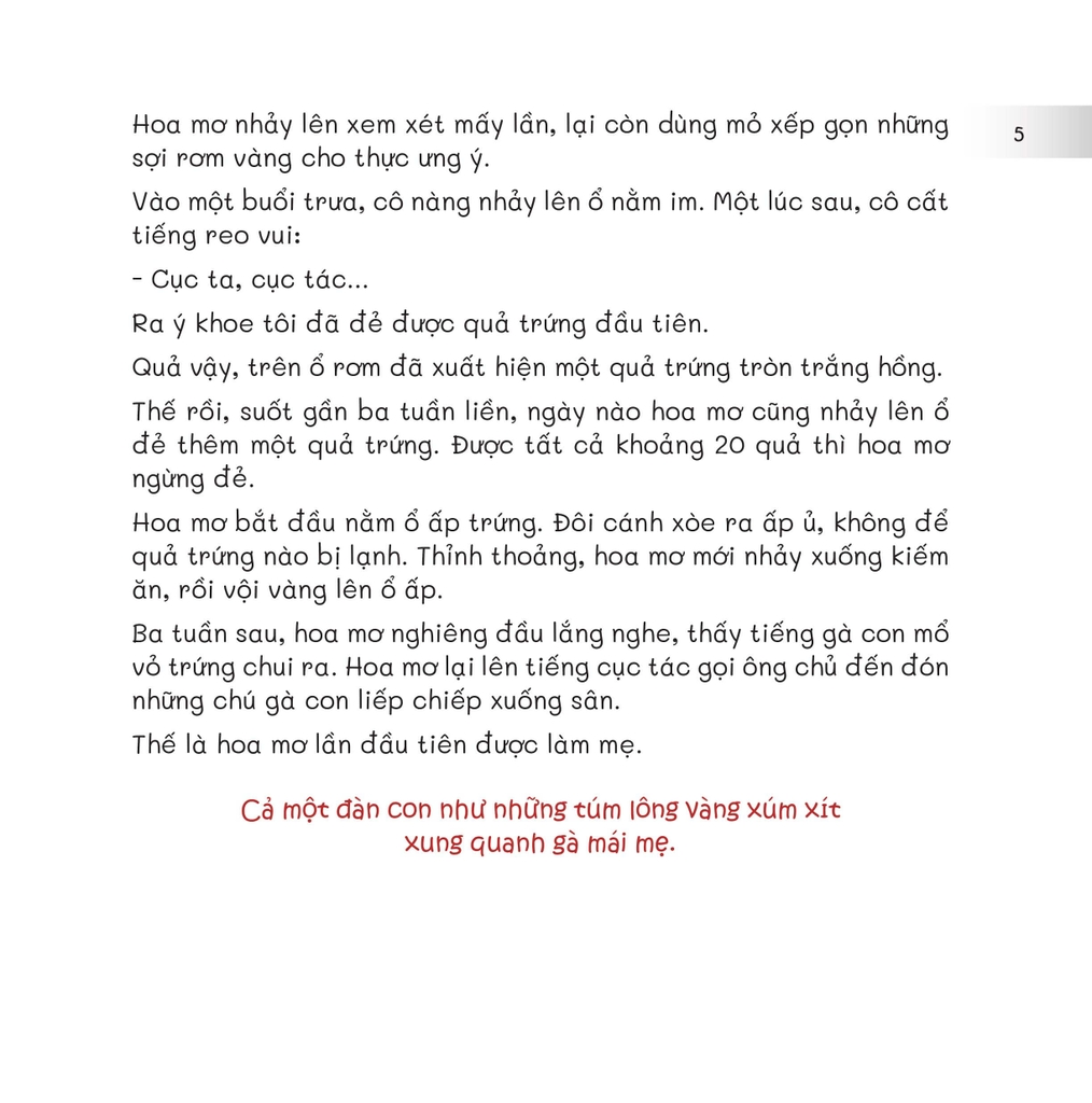 "Đàn gà con và vịt con mới nở, như những nắm lông tơ vàng chạy lon ton, nhìn chẳng khác nhau mấy. Em có nhận ra đâu là vịt, đâu là gà không?"