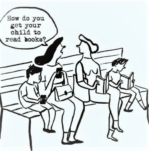 Dựa trên phương pháp học tập này của trẻ, thì bố mẹ muốn con trở thành một đứa trẻ thích đọc sách, thì bố mẹ chỉ cần là người “làm mẫu”, “làm gương” cho trẻ. Theo một nghiên cứu: trong gia đình có bố mẹ là người có thói quen đọc sách thì tỷ lệ trẻ hình thành thói quen này cao hơn 3 lần so với những trẻ sống trong gia đình còn lại. Vì vậy, nếu bố mẹ muốn con có thói quen tốt này, thì mình cũng cần rèn luyện thói quen này cho chính bản thân mình.