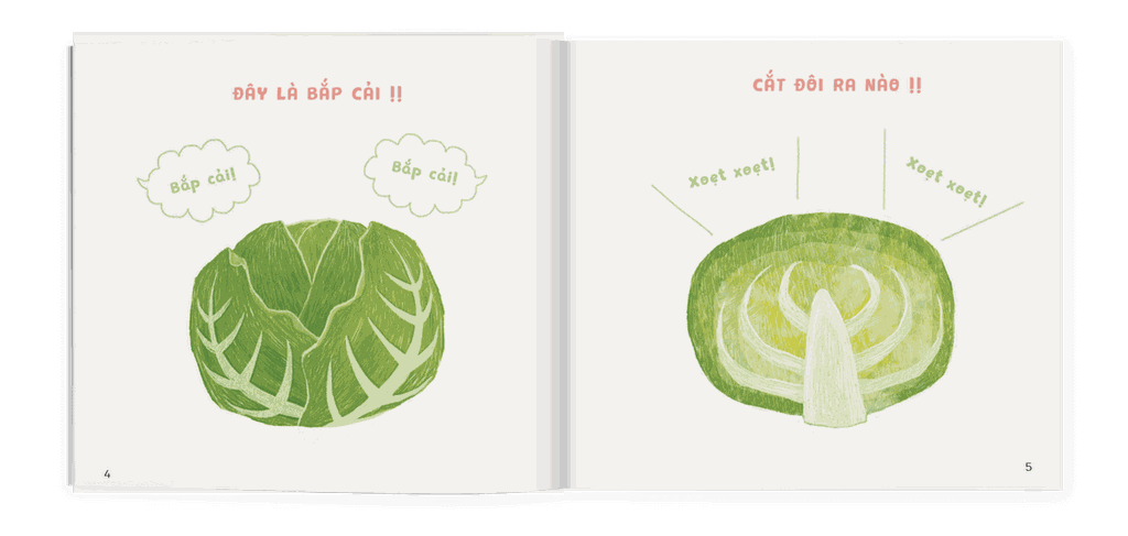- Bằng những nét vẽ ngộ nghĩnh và sinh động, họa sĩ Suchan đã thành công trong việc thể hiện chân thực những loại rau củ và cả những món ăn được làm từ rau củ. Chúng thật bắt mắt và thơm ngon. Chắc chắn các bé sẽ không nỡ từ chối những món ăn tuyệt vời này.