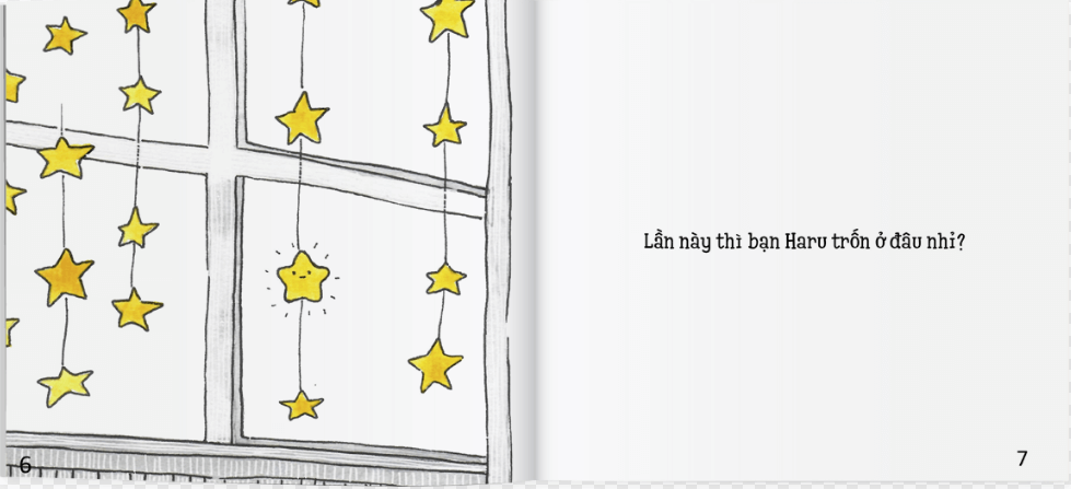 - Nhân vật chính trong 3 cuốn sách là bạn Cá Vàng Fumi, bạn Khủng Long Xanh Yuto và bạn Ngôi Sao Haru. Các bạn nhỏ sẽ được theo chân các bạn nhân vật chơi trò trốn tìm mà trong đó, các bạn nhân vật sẽ đóng vai trò là người trốn, còn các bé sẽ đóng vai trò là người tìm.