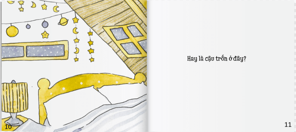 - Khi bố mẹ hỏi các nhân vật ở đâu ở đâu thì trẻ sẽ ý thức được ngay và trả lời, bạn nhân vật ở trong cái này hay ở dưới cái kia. Đây là một bộ sách rất dễ thương, câu chữ ít nhưng hình ảnh rất sinh động. Thậm chí, mỗi buổi tối bố mẹ có thể sáng tạo một câu chuyện về các bạn nhân vật khác nhau nên trẻ hào hứng hơn và tạo ra sự mới mẻ.