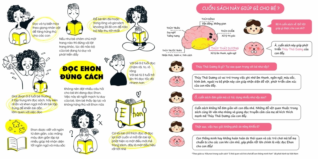 Những cuốn sách trong bộ đồ vật là bộ sách giúp trẻ phát triển được vùng não Thùy Thái Dương ( có vai trò trong việc ghi nhớ âm thanh, ngôn ngữ, màu sắc, hình ảnh ngoài ra bộ nay còn giúp bé định hình được hình dáng, chức năng của các vật dụng thường gặp trong mỗi bữa ăn của bé hay trong nhà bếp và phát triển cảm xúc.
