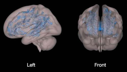 Các khu vực màu xanh cho thấy sự kém phát triển và vô tổ chức của chất trắng, tức là đứa trẻ này sẽ gặp khó khăn trong việc học sau này.